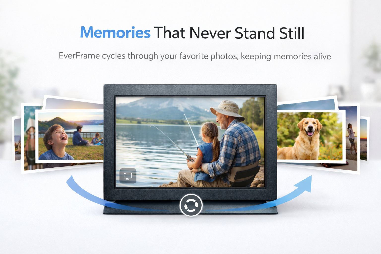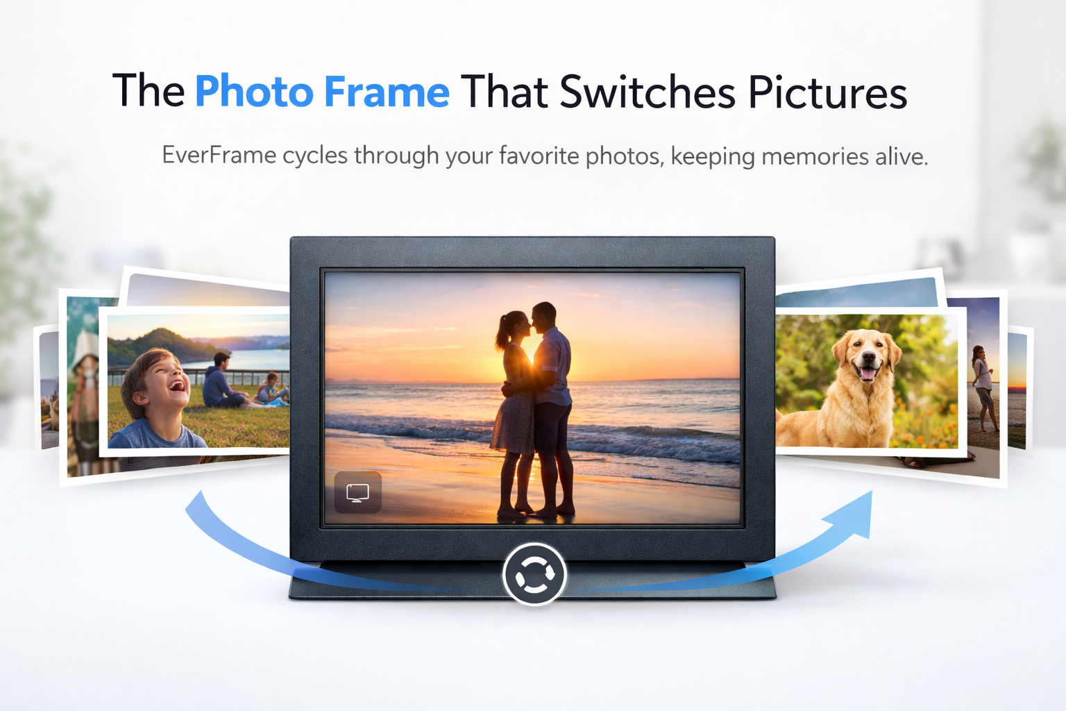 EverFrame is a smart photo frame that continuously switches between your favorite pictures, transforming your memories into a dynamic display. Perfect for homes, offices, or gifts, it lets you enjoy every moment without choosing just one photo. One frame. Endless memories.